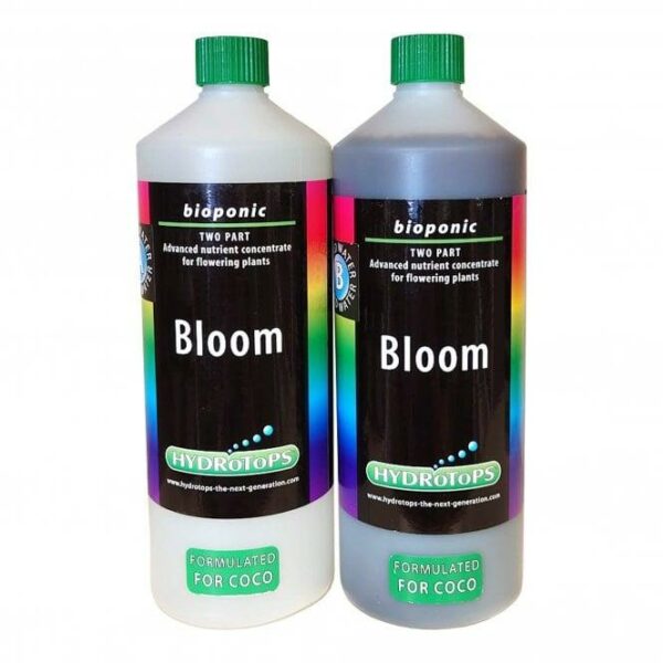 Bioponic Coco Bloom A+B from Hydrotops is a concentrated nutrients formula developed to meet the needs of flowering and fruit bearing plants grown in Coco Coir during the Flowering stage of the cultivation cycle.